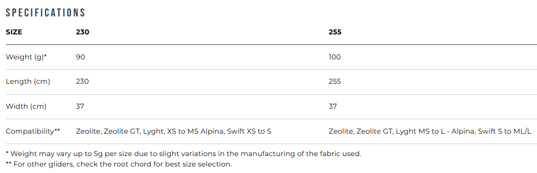 The Concerto Ultralite is designed for pilots who want the easy, efficient packing of the Concerto Light, while adding minimal weight to their equipment. Weighing less than 100g, it is slightly narrower than the Concerto Light to fit even better with the Trail Race S rucksack.