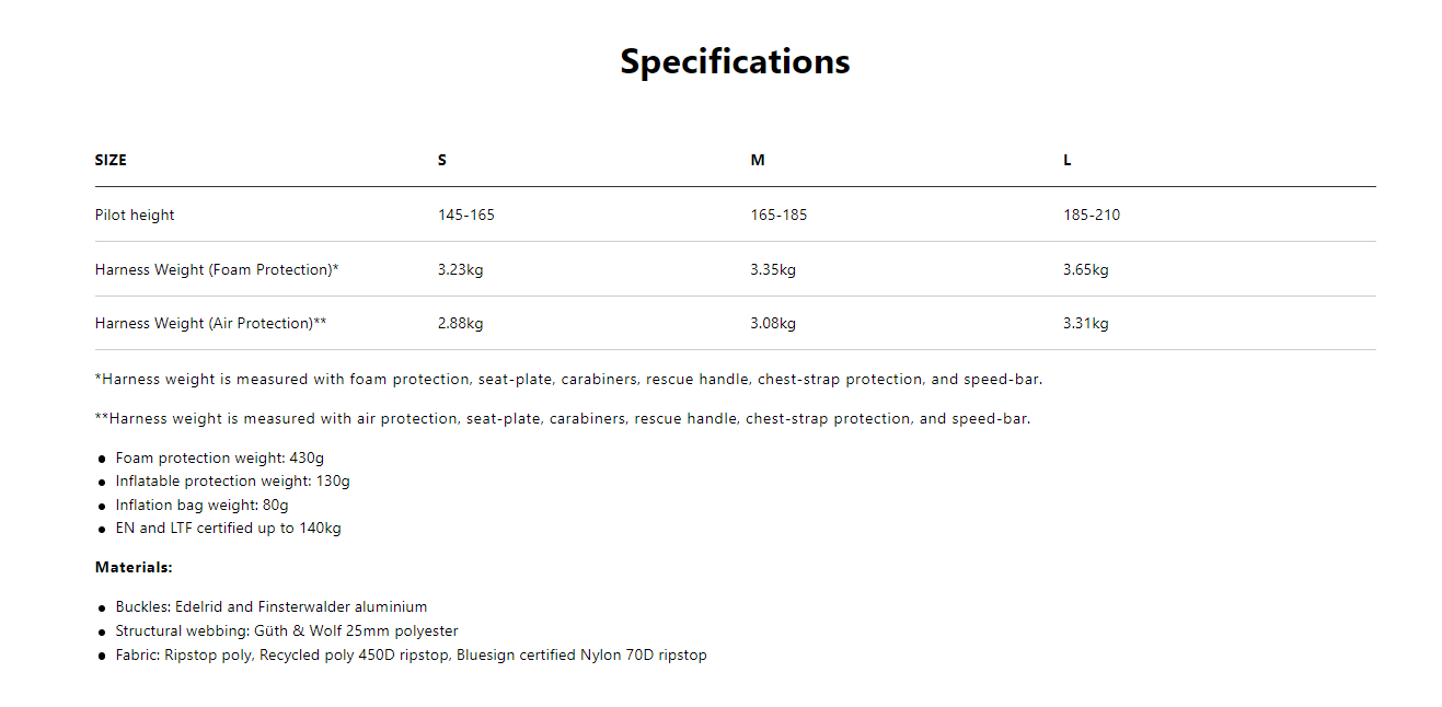The Halo is equipped with an anti-forget harness system and the buckles were chosen to avoid confusion or mis-mating. Moreover, they are easy to inspect from the instructor's perspective. Colour coding differentiates left and right buckles.