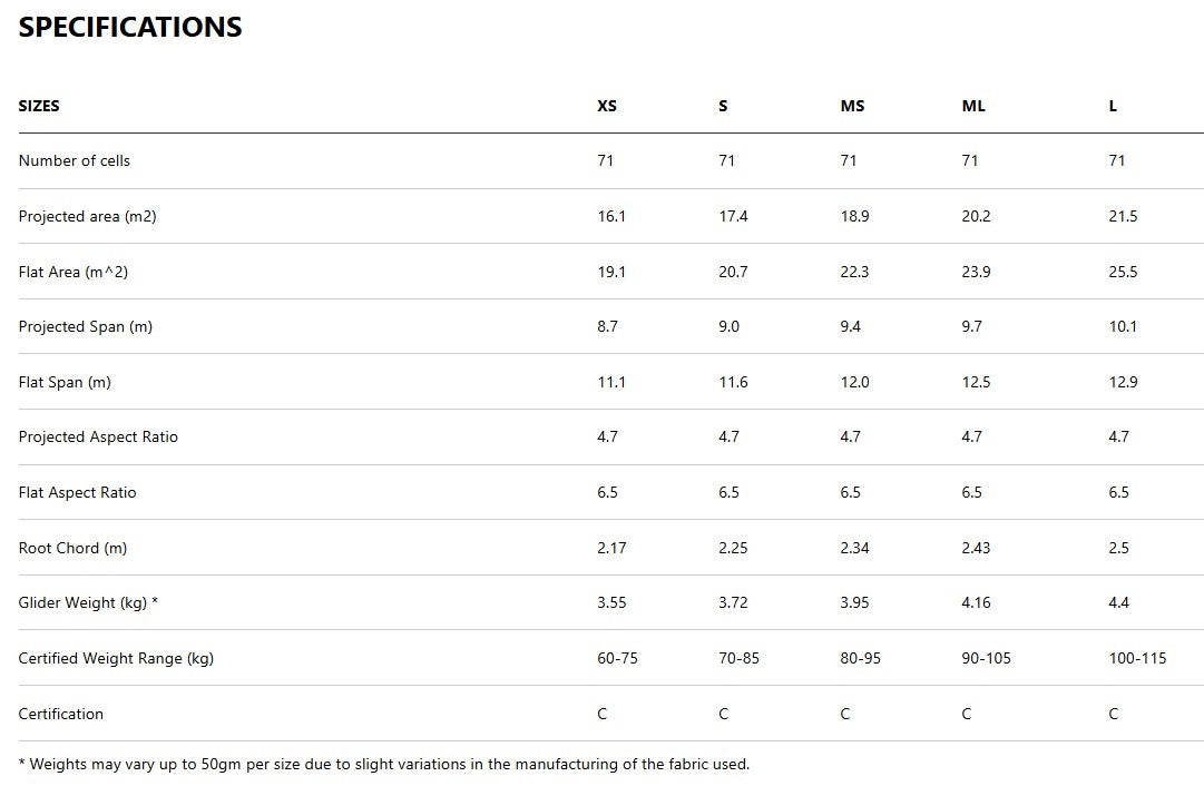 Designed for pilots who want the improved inflation, agility and handling inherent in light wings, the Lyght is a solid and dependable wing for big mountain adventures. The reduced sail weight makes a noticeable difference in the handling. The weight reduction is due to a complex internal structure derived from the Zeolite GT development. The ultralight internals yield the same solidity and rigidity with reduced sail weight and improved handling.