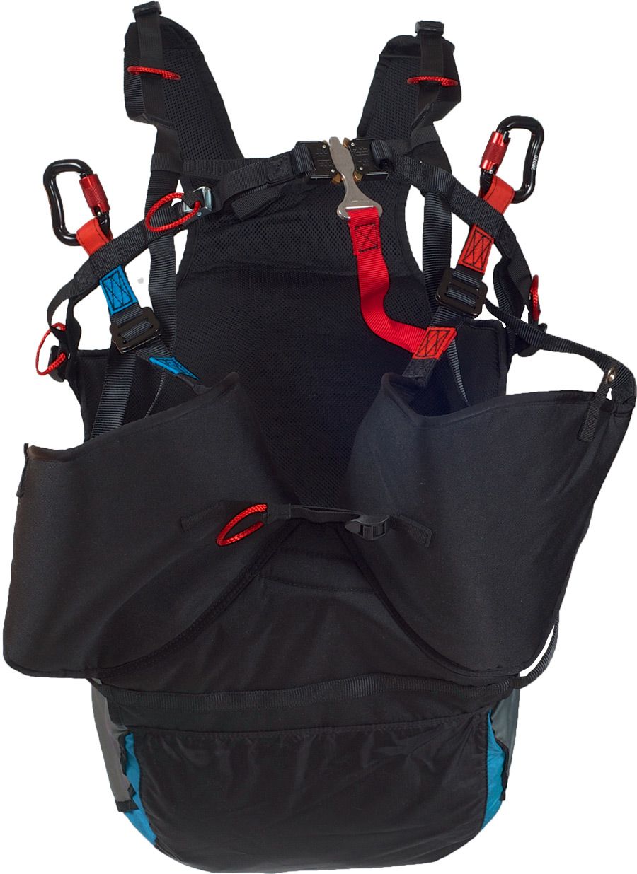 Lightweight reversible hike and fly harness. Split leg, no back protection, no reserve compartment.