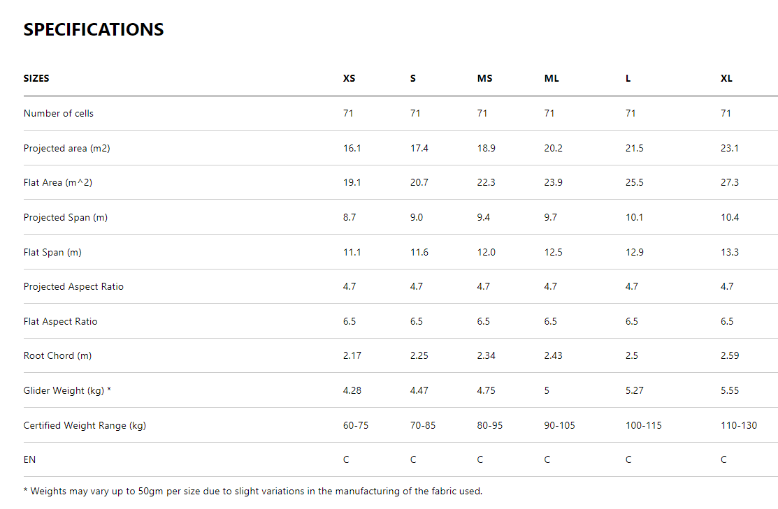 Certified EN C and available in six sizes, the Photon is suitable for experienced pilots who have prior time flying EN C category wings and possess a high level of glider control skills with recent SIV experience.