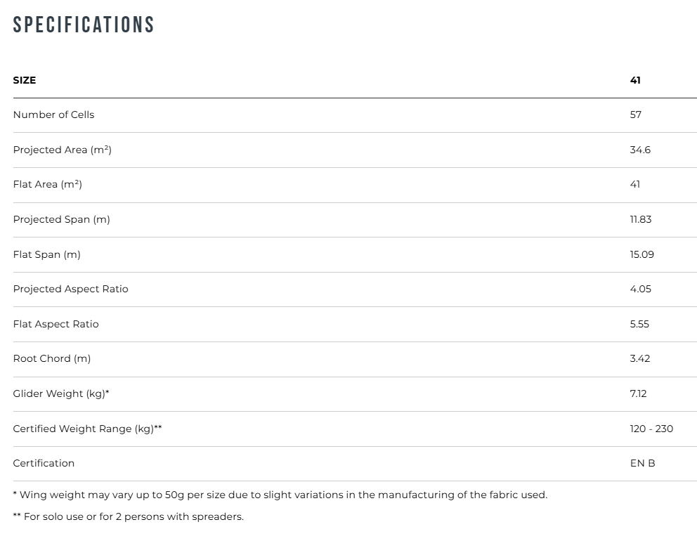 - New airfoil, winglets, Rollercam trimmers, and 20mm risers