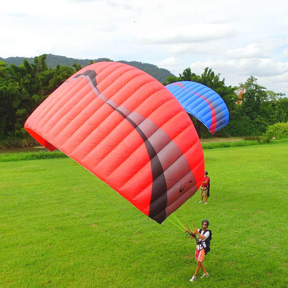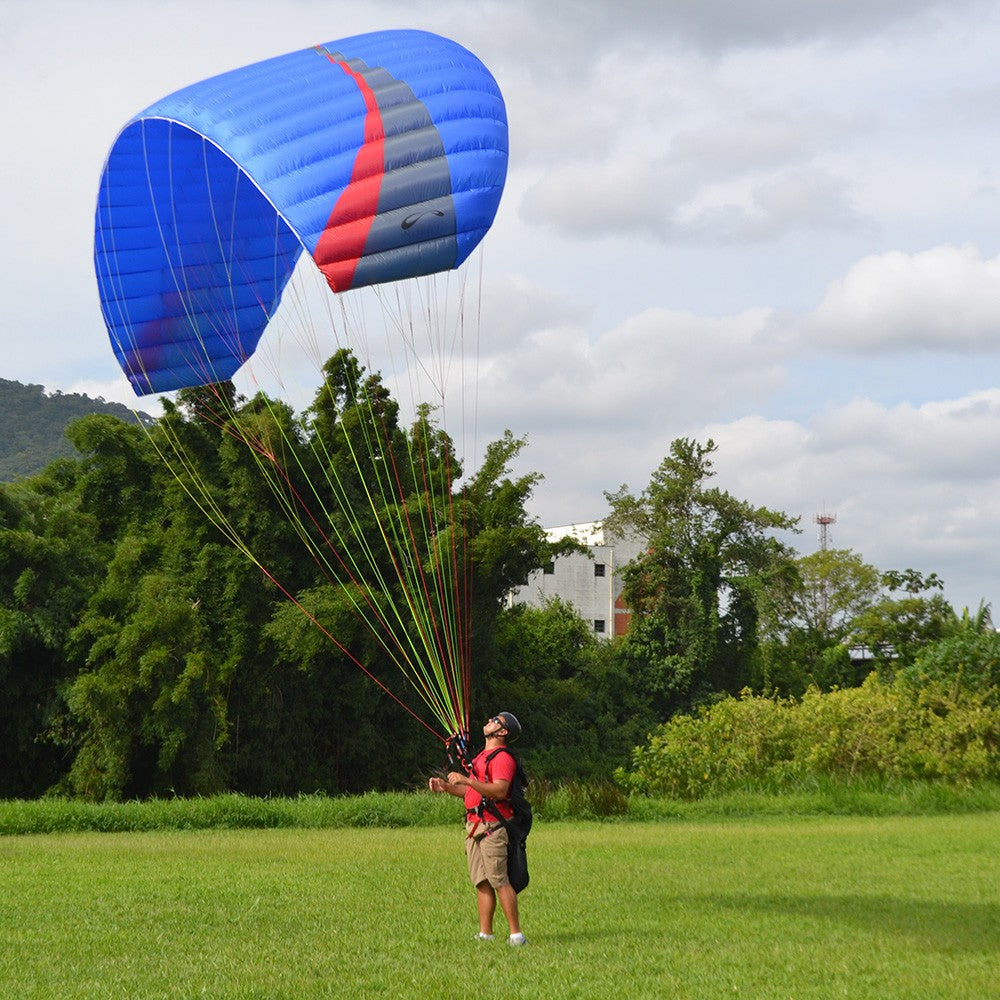 The mini wing flying concept is responsive, smooth and stable and attends to skilled and careful pilots with flying experience in dynamic handling to fly fast and in windier conditions when normal paragliders are not recommended.