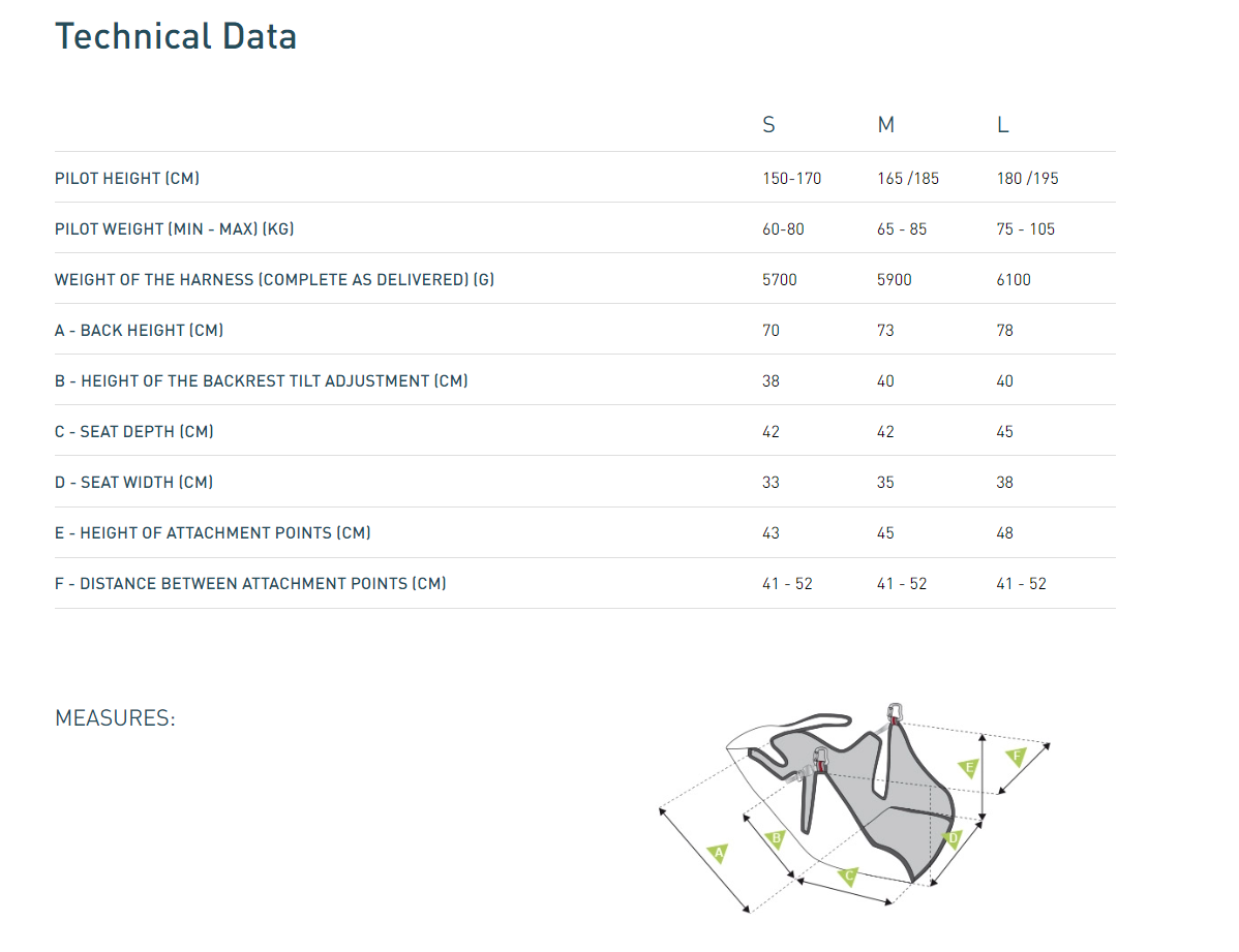 The design of the harness is tighter, especially the back pocket with gusset which becomes very compact in flight and the shoulder straps are now fixed on the belly.