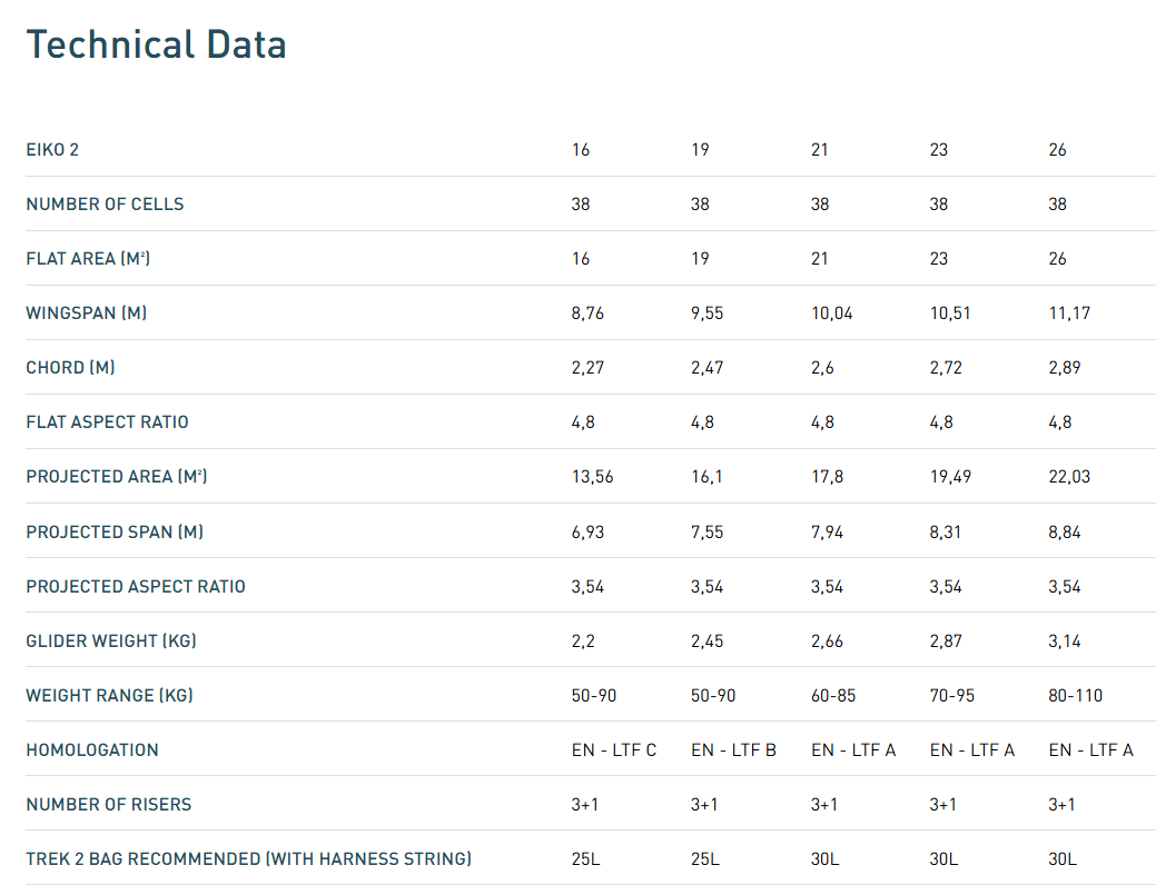 The EIKO 2 ensures a fast take-off and brings a reassuring efficiency: ideal to progress thanks to its versatility and its all-terrain character. It is suitable for a wide range of pilots: the large sizes are less demanding, while the smaller wings are designed for pilots who like tight trajectories and high speeds.